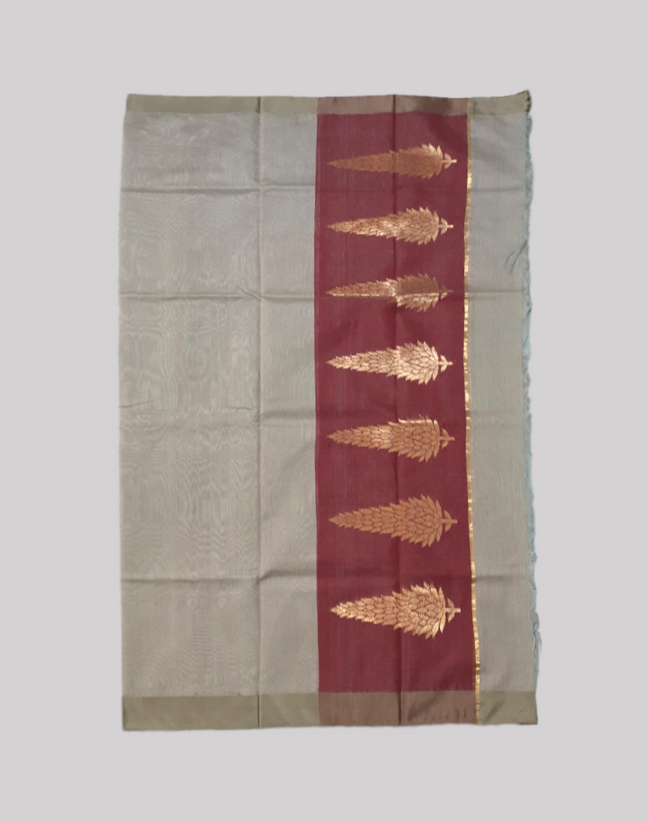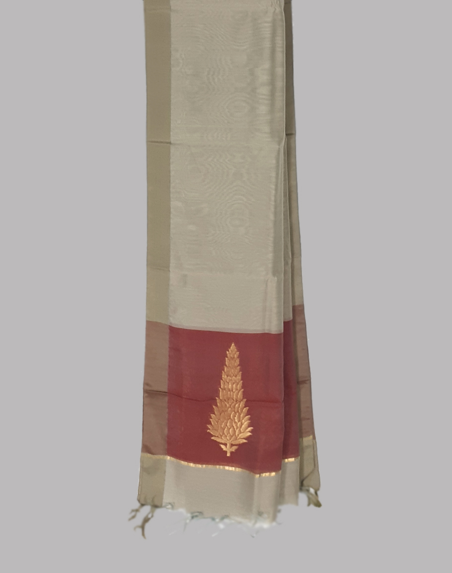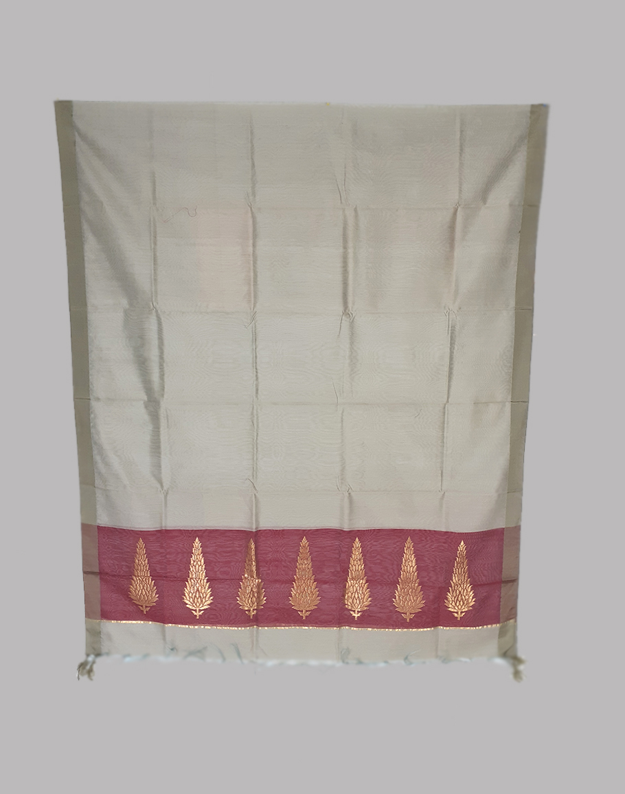 Chanderi silk cotton white and red dupatta with traditional leaf motifs and tassels