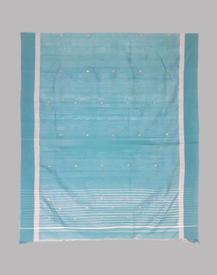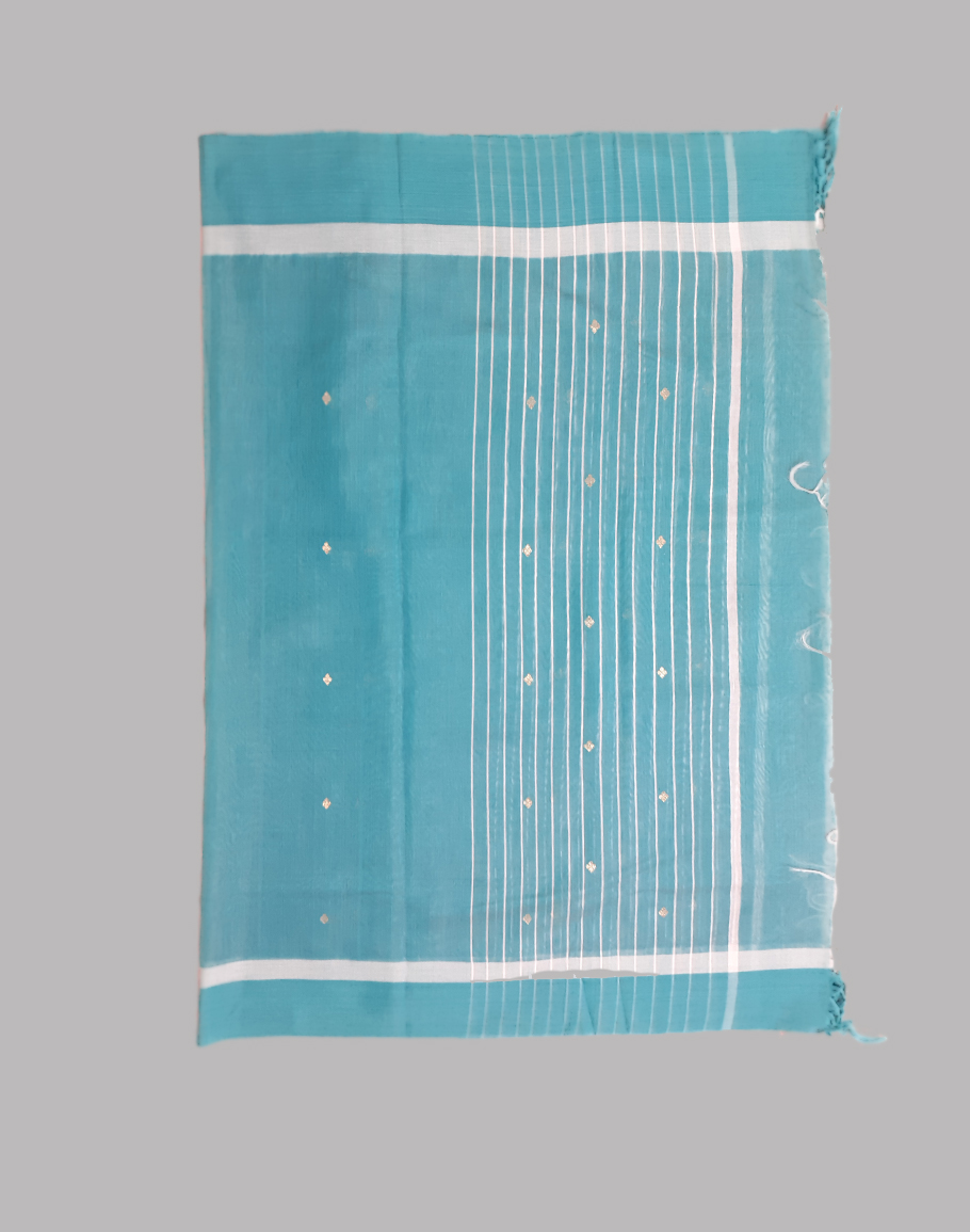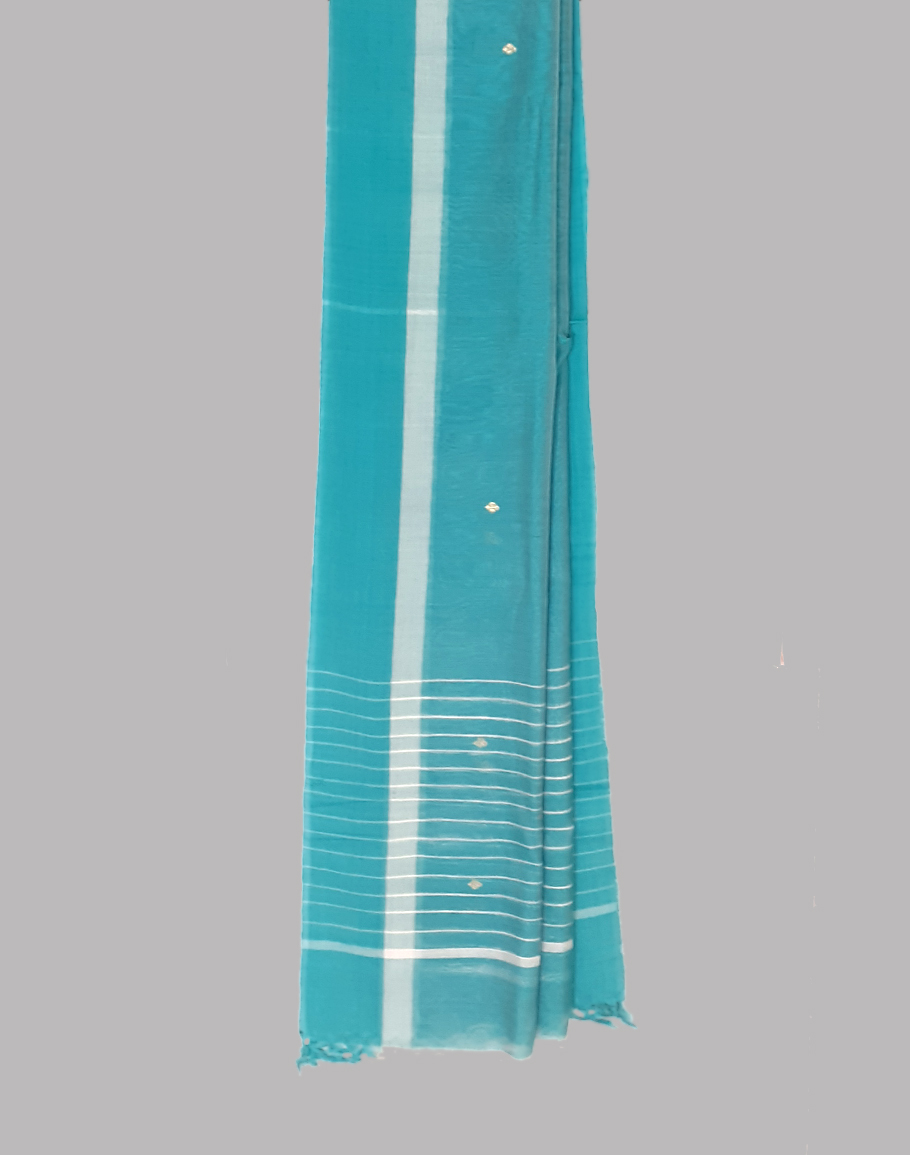 Chanderi silk cotton blue dupatta with white stripes, border and zari bootas all over the body