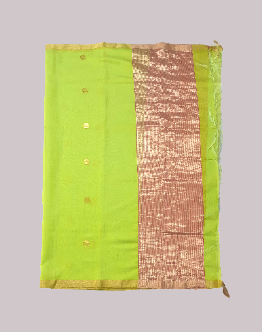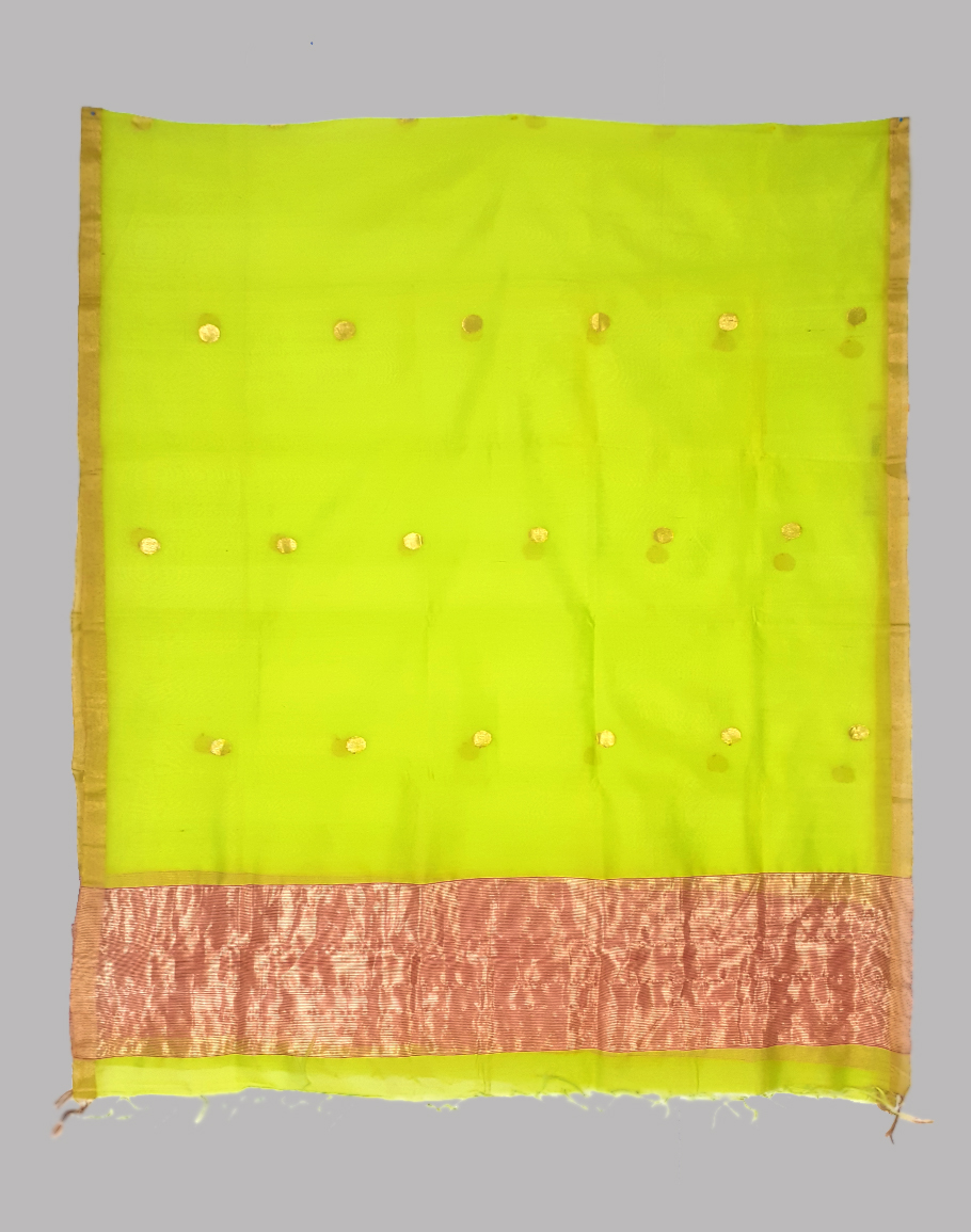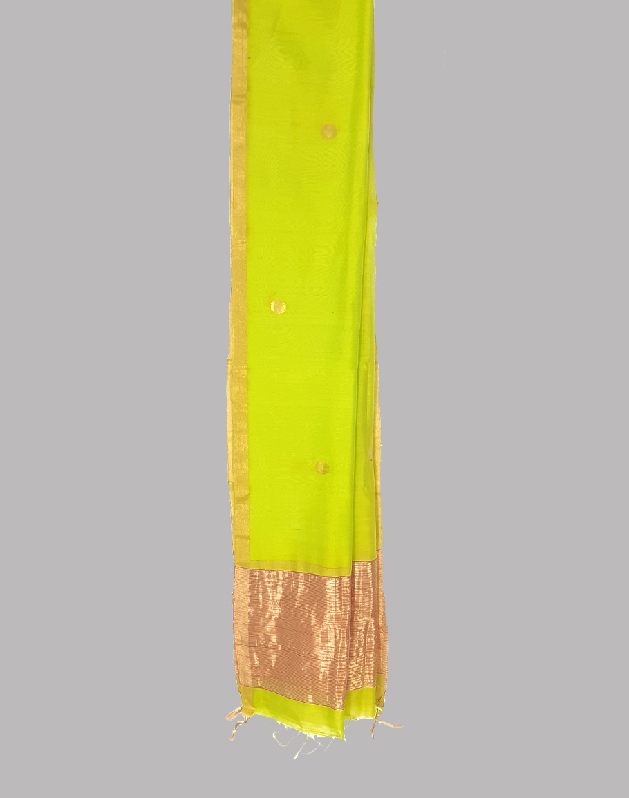 Chanderi silk cotton yellow dupatta with coin motifs all over the body, zari strips and border with tassels