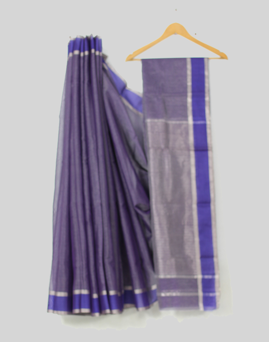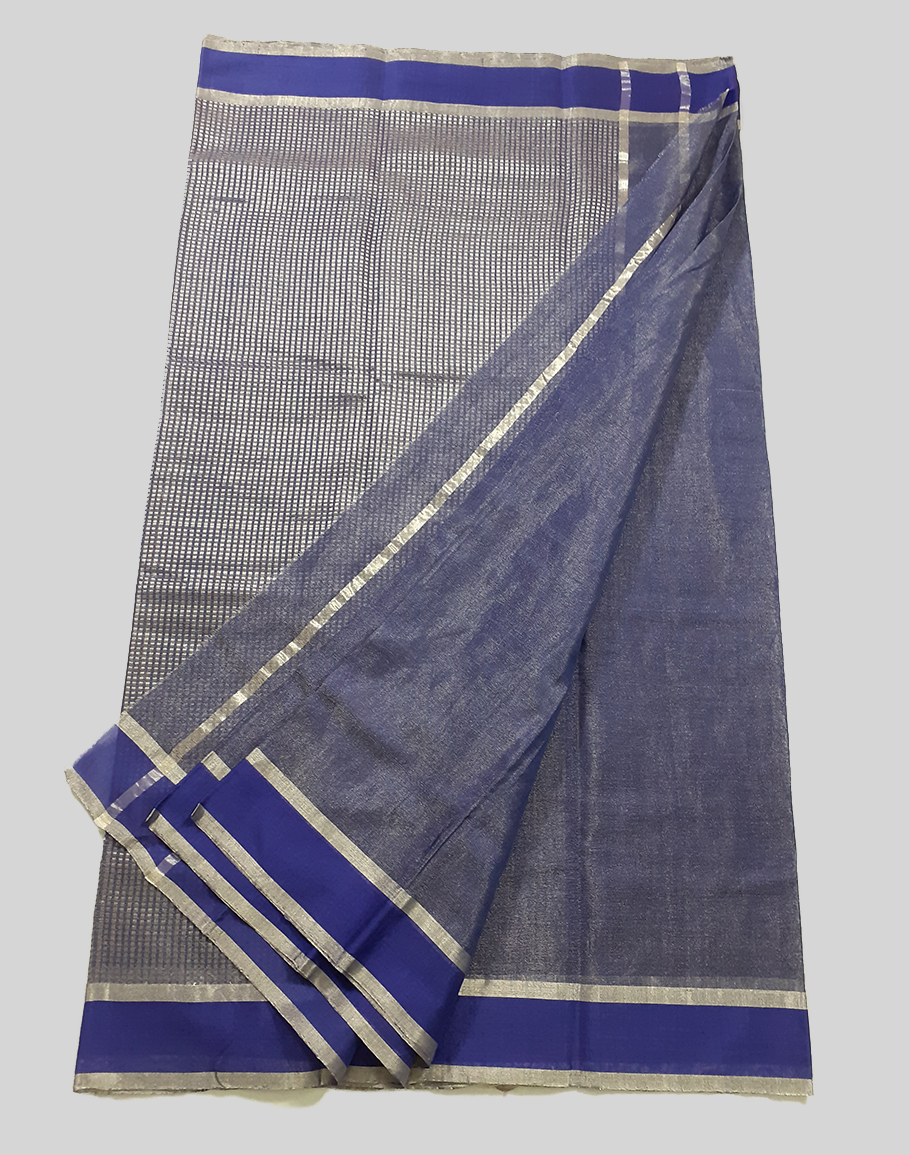 A cotton silk chanderi tissue saree accented with kirkita pallu and zari border. This saree comes with an unstitched blouse.